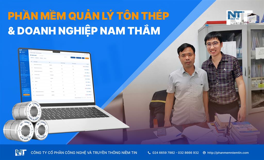 Tháng 10/2025, doanh nghiệp Nam Thắm - một đơn vị kinh doanh và sản xuất tôn thép tại xã Gia Vượng, huyện Gia Viễn, tỉnh Ninh Bình đã lựa chọn Phần mềm Niềm Tin làm nền tảng quản lý tổng thể. Đây là một trong những khách hàng triển khai nhanh và đi vào sử dụng thực tế chỉ sau 4 ngày.
